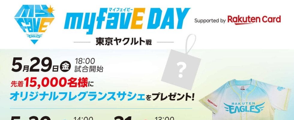 5月29日(金)~31日(日)東京ヤクルトスワローズ戦で、「myfavE DAY Supported by楽天カード」を開催します。性別・年齢を問わず、楽天イーグルスのMyfave(私の推し)を満喫していただく特別なイベントです。