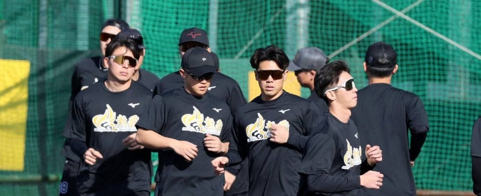 阪神の先乗り合同自主トレが29日、沖縄の「バイトするならエントリー宜野座スタジアム」で始まった。午前10時前にメイン球場に集結。参加選手は26年シーズンのチームスローガン「熱覇(ねっぱ)」が記されたおそろいのウエアを着用した。