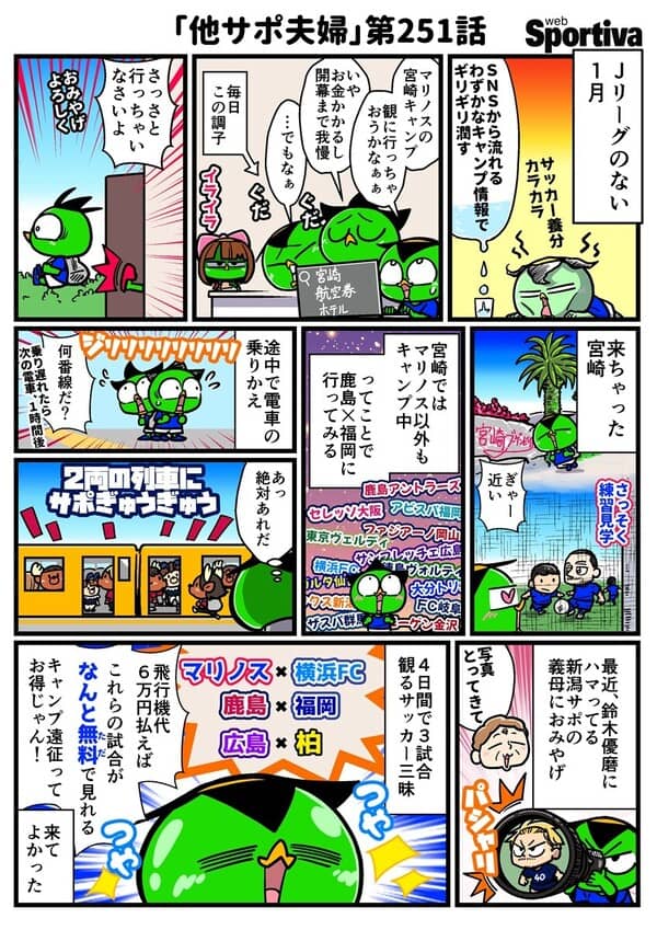 Jリーグのない1月。千田先生は宮崎キャンプに出かけたようです。