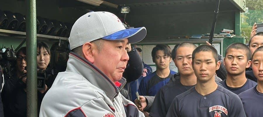 「負けてからは、もう選抜出場は無いだろうと思いつつ、選ばれることを信じてやろうと。そうすれば選ばれなかったとしても次につながるだろうという思いで、選手たちは、僕が横浜高校の指揮を執るようになってから一番練習したかなと思うくらい練習してきました」とナインを称えた。続けて「今日、厳しい練習を乗り越えてきてくれた選手たちの逞しさの宿った目を見た時、うるっときてしまいました。泣く予定なんて全くなかったのですが、それくらい選手たちはよくやってくれて、だからこそ甲子園の女神様に呼んでもらえたのだと思います」と吐露した。