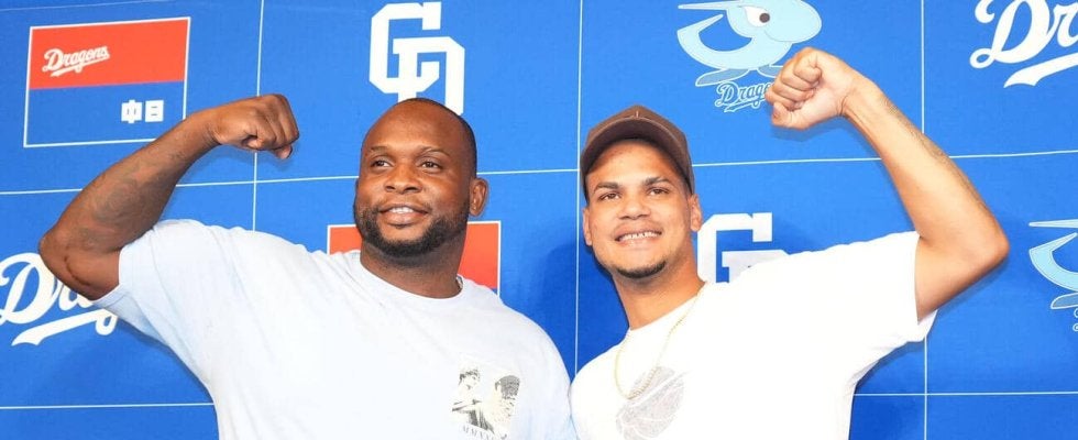 中日入団が決まった心境について、サノーは「本当にうれしかった。神様のおかげ。日本野球のチャンスをもらえてうれしかった」と笑顔。アブレウも「2年ぶりに日本に戻ってくることができて光栄」と喜びを口にした。