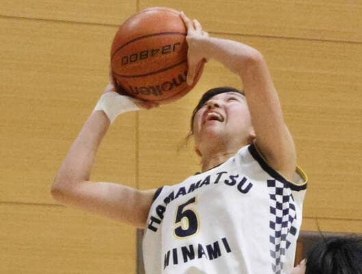 女子の浜松南がウィンター杯県予選の準々決勝で敗れた市立沼津に快勝した。25日の決勝L第1戦ではインフルエンザで主力級を3人欠いて浜松開誠館に敗れたが、1勝1敗で初Vに望みをつないだ。相沢彩乃と2人で57得点を挙げた金子莉央主将(いずれも2年)は「練習してきたことは出せた」と胸を張った。杉本貴央監督(37)は「東海に出てキャリアアップしたい。まずは、あした(2月1日)浜松学院興誠に勝って出場権をつかみたい」と、2年連続の東海切符取りに照準を合わせた。
