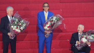 セルジオ越後の「新・サッカー一蹴両断」(26)いずれも親交の深いラモス瑠偉氏(中央)、木村和司氏(右)と共に受賞 pho…