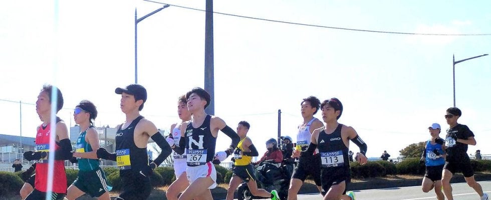 約33キロでエチオピアのマスレシャ(25)が飛び出し、青学大の「シン・山の神」黒田朝日(4年)、日本歴代4位の2時間5分16秒の自己ベストを持つ吉田祐也(28)=GMOインターネットグループ=、聞谷賢人(31)=トヨタ紡織=が追う展開となっている。