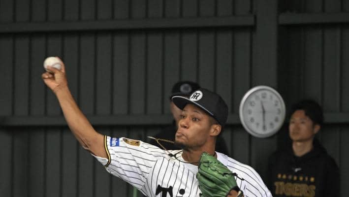右打者を立たせながら梅野を相手に全29球を投じた。右打者にとって脅威となる変則スライダーも披露。ハンドジェスチャーで投球軌道を確認しながらの初ブルペンとなった。