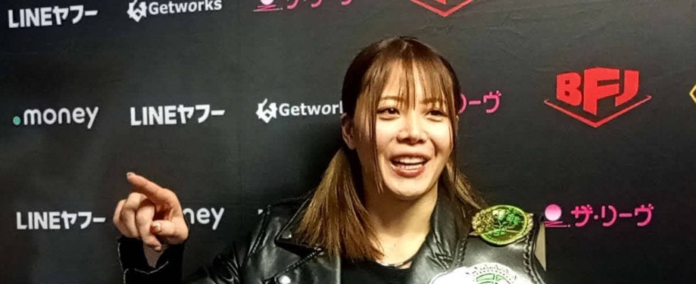 咲夜は試合後、先週に続き、指でGHCの文字を描いて、GHC女子王座への挑戦をアピール。すると花道から、王者の岩谷麻優が登場した。