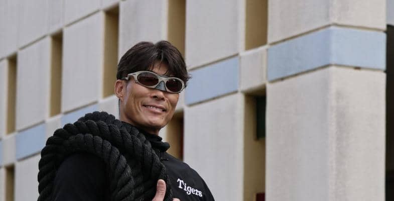 この日から2日間、そして第2クールで臨時コーチを務める同氏は午前9時20分に球場入り。ファンから「糸井さーん!」と歓声を浴びると「グッドモーニング!」と笑顔で返答。昨年はクリケットバットを持参したが今回、肩には大縄を担いでおり練習用の“秘密兵器”とみられる。