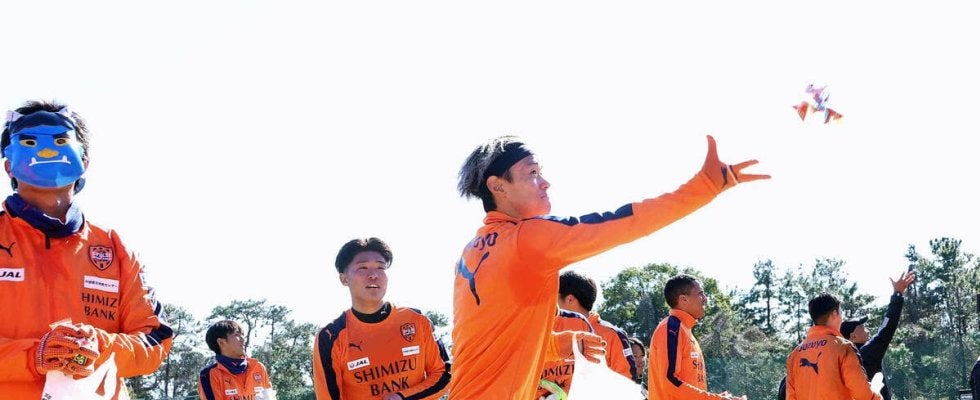 J1清水エスパルスは節分の3日、三保グラウンドでの練習を公開。約1時間半のトレーニングを終えると、見学に訪れたサポーター約100人に「豆まき」でサービスした。