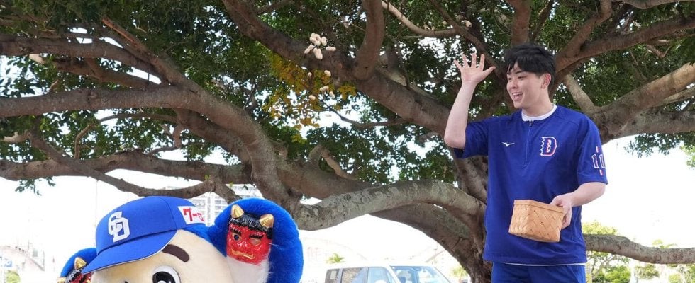 中日のドラフト1位ルーキー中西聖輝投手(22=青学大)が3日、沖縄・北谷で行われている1軍キャンプで、球団マスコットのド…