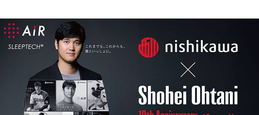 大手寝具メーカー「西川株式会社」は4日、ドジャース・大谷翔平投手と2026年度も睡眠コンディショニングサポート契約を締結したと発表した。高校卒業後の日本ハム入団時から同社のマットレス「エアー」シリーズを愛用しており、2017年の契約締結から数えて10年目の節目を迎える。