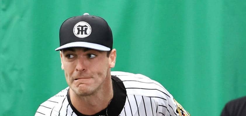 「阪神春季キャンプ」(3日、宜野座) 先発陣に新たに加わる新外国人コンビ、カーソン・ラグズデール投手(27)=前ブレー…