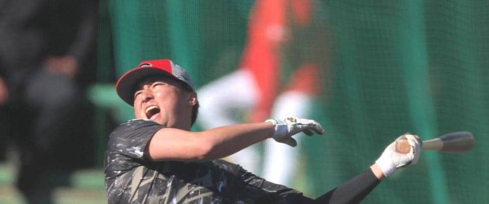 全体練習の最後に組み込まれたロングティーでは、最後までフルスイングを貫いた。今キャンプのテーマに掲げる“強さ”を全力で体現。「本当に一日一日が勝負だと思っているので、これを継続してやっていきたい」と佐々木。日の丸を背負う時間が、若鯉の成長速度を加速させる。