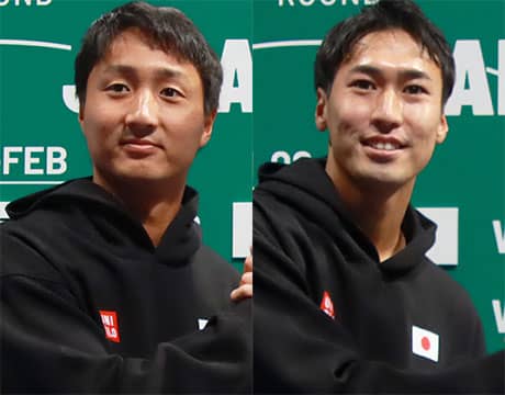 6日と7日に行われる男子テニスの国別対抗戦デビスカップ予選1回戦「日本vsオーストリア」(日本/東京、有明コロシアム、室内ハード)のチーム記者会見が5日に行われ、シングルスに出場することとなった世界ランク108位の望月慎太郎と同166位の綿貫陽介が意気込みを語った。