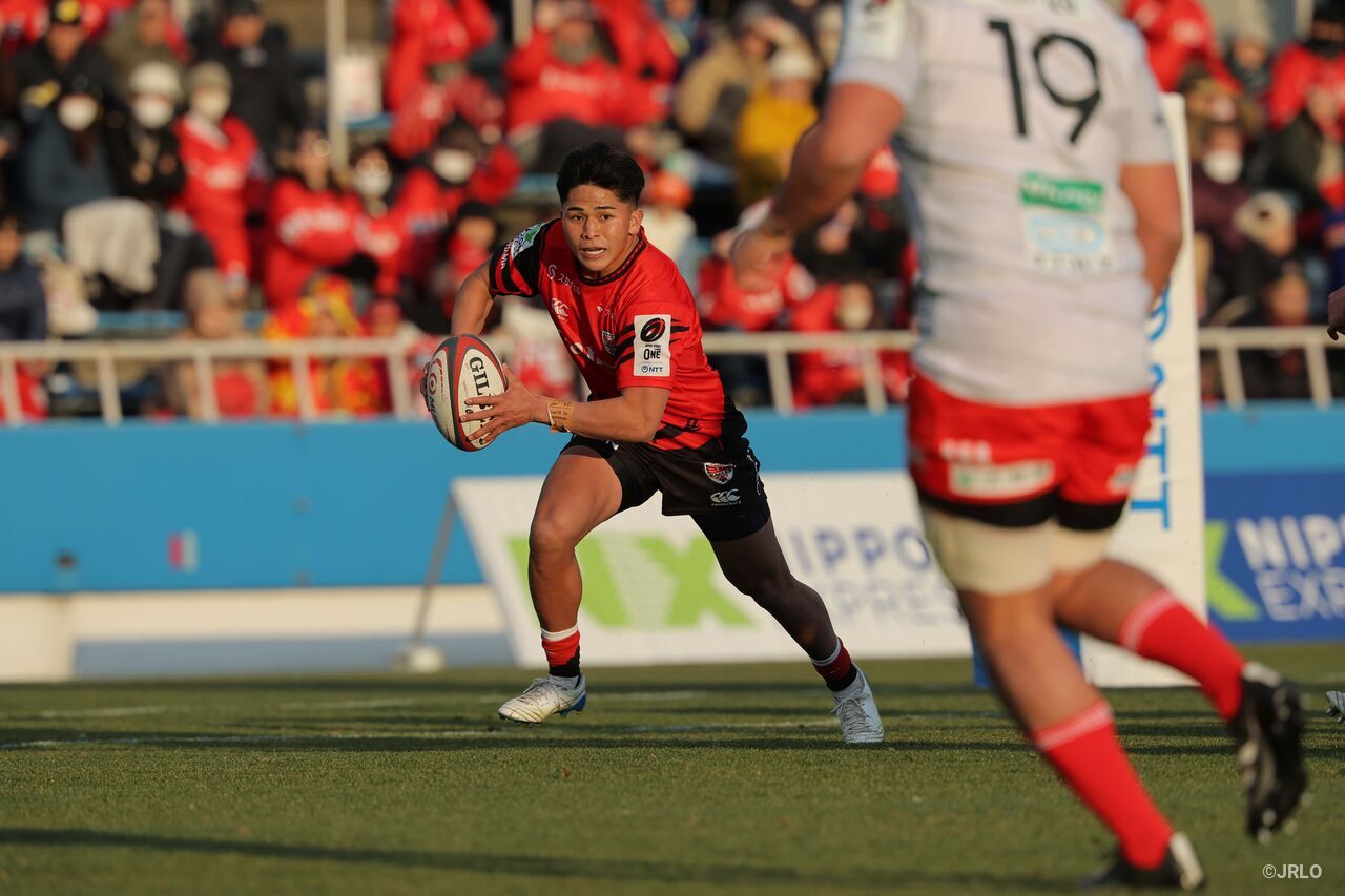 その言葉の主である武藤にとって、今節はスタンドオフでの今季初先発試合。コベルコ神戸スティーラーズ(以下、神戸S)戦では後半途中にフルバックからスタンドオフにポジションを移し、1トライをマークしたが、ともにフレッシュな状態で対峙する前半は「神戸S戦のように全部が全部ノリノリでいけるわけではない」と覚悟している。