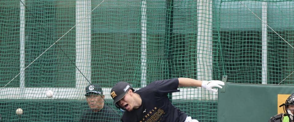阪神の佐藤輝明内野手がフリー打撃中に右膝付近に死球を受け、打席内に倒れ込むシーンがあった。
