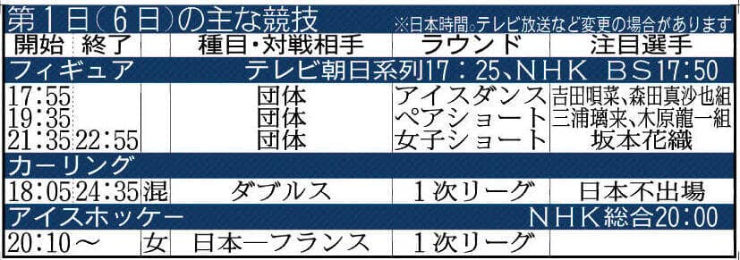 日付が変わった午前4時からは開会式。日本選手団の旗手を務めるのはスピードスケート男子の森重航(オカモトグループ)だ。NHK総合で生中継される。
