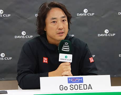 男子テニスの国別対抗戦デビスカップ予選1回戦「日本vsオーストリア」(日本/東京、有明コロシアム、室内ハード)は6日、シングルス2試合が行われ、日本は世界ランク166位の綿貫陽介が先勝したものの、同108位の望月慎太郎は敗れ、1勝1敗で初日を終えた。初日を終え会見に臨んだ監督の添田豪は「(明日に向けて)最善の努力をしていきたい」と語った。