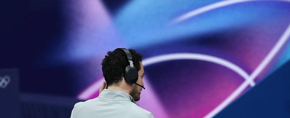 演技直前の5分間練習で、スケート靴を履いたグレーの長袖長ズボン姿の男性カメラマンがリンクに登場。選手たちと並んで滑走し、臨場感あふれる映像を届けた。本番では、得点を待つキス・アンド・クライに向かう選手の様子などを撮影していた。