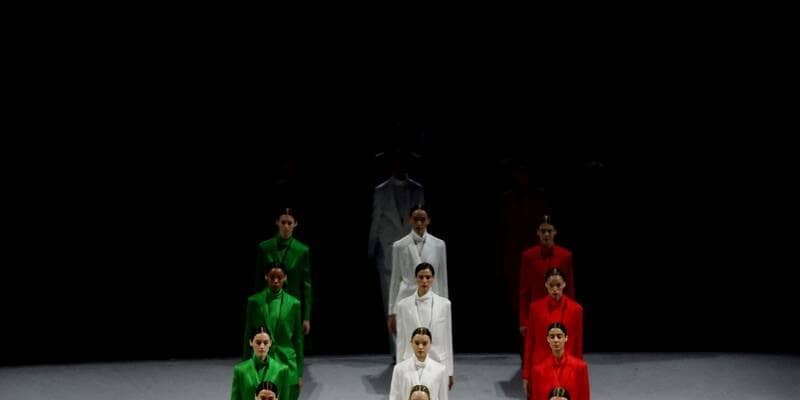 【ミラノ(イタリア)6日=大谷翔太】イタリアの国旗掲揚で、イタリアのハイブランド「ジョルジオ・アルマーニ」がデザインしたスーツに身を包んだたくさんのモデルたちが会場をかっぽした。赤、白、緑と色鮮やかなスーツに身を包んだモデルたちの最後にはファッション界のスター、ジェレッティが登場。国旗を手に持ち、近衛兵に手渡すと、ミラノ、コルティナダンペッツォ、リビーニョ、プレダッツォの4会場で一斉にイタリア国家が響き渡り、ポールに赤白緑のイタリア国旗が掲揚された。