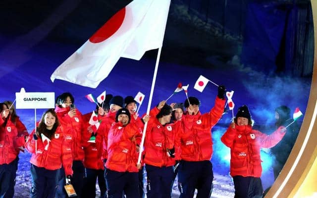 日本選手団の旗手は、2022年北京五輪の銅メダリスト2人が務めた。