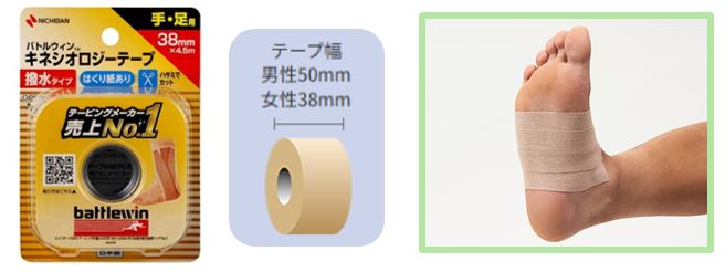 撥水機能とフィット感をプラスした使いやすい伸縮性粘着テープ。土踏まずをサポートすることで、足裏のアーチを保ち、疲れを軽減・予防します。テープを3本貼るだけなので簡単です。