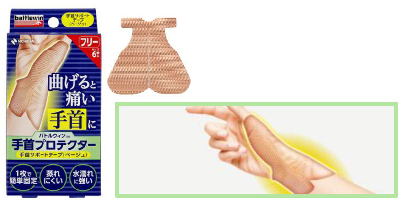 曲げると痛い手首を固定する手首サポートテープ。片手でサッと貼れて簡単に固定できます。