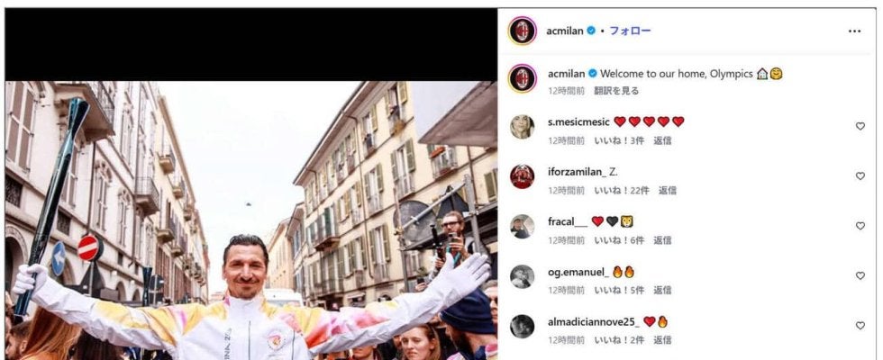 ACミランは公式インスタグラムに同氏の写真、動画をアップ。イブラヒモビッチ氏は動画の中で「とても誇りに思う。イタリアは自分の第2の故郷だと言い続けてきた。イタリアは自分に多くのものを与えてくれた。この(聖火ランナーを務めた)瞬間はいつまでも忘れないものだ」などと喜びのコメントを述べた。