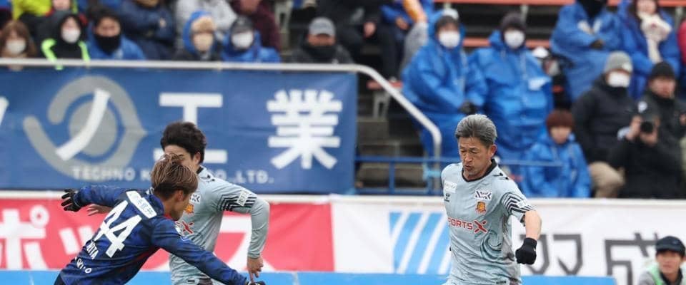 先発したカズは横浜FC時代の21年3月10日の浦和戦以来、1795日ぶりのJリーグ公式戦出場。Jリーグ公式戦の最年長出場記録を58歳346日に更新した。