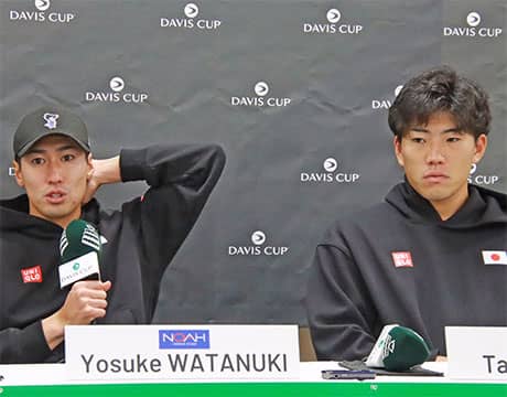 男子テニスの国別対抗戦デビスカップ予選1回戦「日本vsオーストリア」(日本/東京、有明コロシアム、室内ハード)は7日、第3試合のダブルスが行われ、綿貫陽介/ 柚木武ペアがL・ミードラー(オーストリア)/ A・エルラー(オーストリア)ペアを7-6 (7-4), 6-7 (8-10), 6-4のフルセットの激闘の末に破り、日本は2勝1敗として勝利に王手をかけた。試合後の会見で綿貫は、「なんとしてでも1勝をあげたい気持ちが強かった」と明かした。