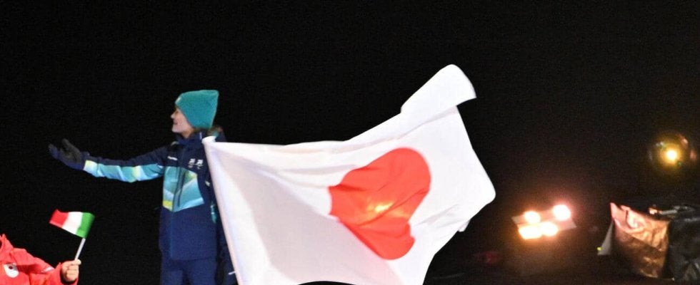 <ミラノ・コルティナオリンピック(五輪):開会式>◇6日◇ジュゼッペ・メアッツァ競技場国名が記されたプラカードを持った選…