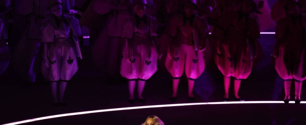 ▽マライア・キャリー 式序盤に白いゴージャスな衣装で登場。イタリア語で「ボラーレ」を熱唱した。