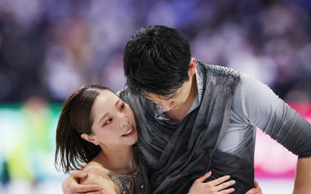 フィギュアスケートペアの三浦璃来(左)と木原龍一