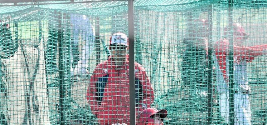 気温3度の中で始まった全体アップでは先頭の組で声を張り上げた。フリー打撃中は新井監督から約15分にわたって熱視線が注がれ、2人で話し込む場面もあった。