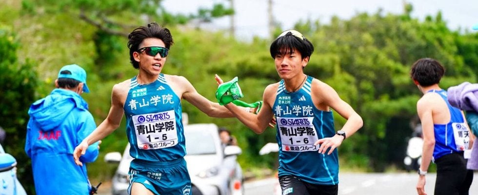 5区終了時点で、青学大が首位。3秒差の2位に順大が続いた。優勝争いは大接戦。アンカーは青学大が前川竜之将(1年)、順大が古川達也(3年)。宮古島の熱い戦いはゴールまで続く。