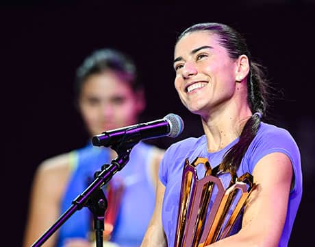 今大会は母国大会に第3シードで出場し、1回戦で世界ランク71位のK・ラヒモワ(ウズベキスタン)、2回戦で同153位のT・ジダンセク(スロベニア)、準々決勝で第5シードのA・ポタポヴァ(オーストリア)、準決勝で同144位のD・スニグル(ウクライナ)を下し決勝へと駒を進めた。