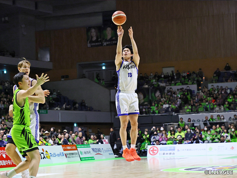 後半、三河は角野亮伍の3ポイントなどで追い上げを見せるが、北海道のドワイト・ラモスを止めきれずリードを奪えない。それでも73-68で迎えた最終クォーター、三河の猛攻が始まる。角野や久保田義章、長野誠史の3ポイントなどで点差を詰めると、一進一退の攻防に。残り38秒には北海道のジョン・ハーラーがファウルアウトとなるなか、三河の長野がフリースローを沈めてリードを奪う。