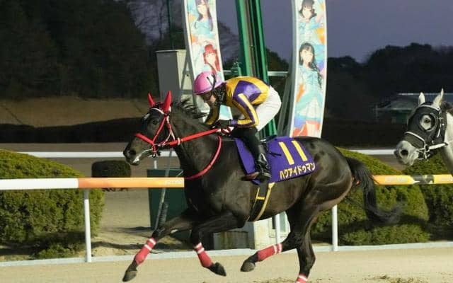 さらに3馬身差の3着に6番人気カシノアミュレット(セ3、佐賀・手島勝利厩舎)が入った。なお、1番人気ダバイシュクレ(牡3、佐賀・北村欣也厩舎)は6着に、2番人気プレアレジェンド(牡3、佐賀・三小田幸人厩舎)は5着に終わった。