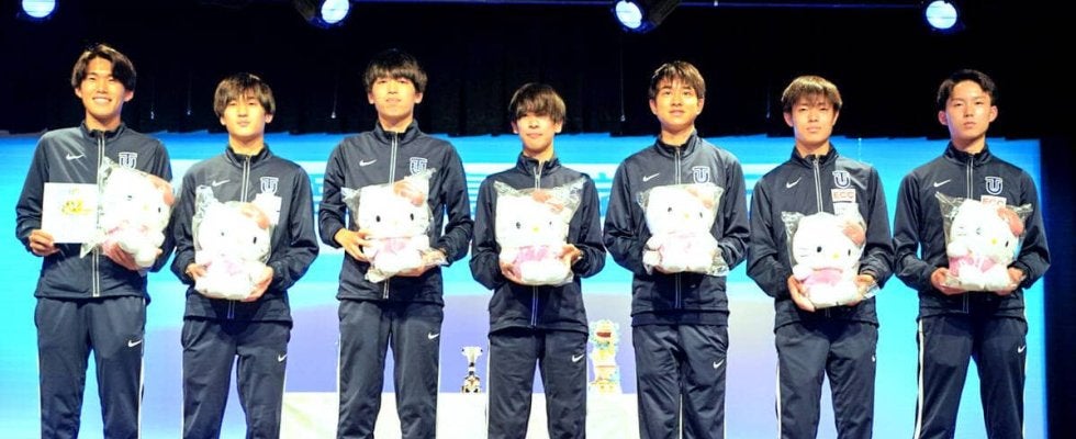 今年の箱根駅伝では14位。21年ぶりにシード権(10位以内)を逃した。1区で区間賞を獲得したエースの松井海斗(2年)はレース直後「箱根駅伝で結果を残せず、悔しかった。その分も、きょうは区間賞を取るつもりでした」と表情を引き締めて話していた。ただ、表彰式で、サンリオ経営戦略本部コーポレートブランディング部の鶴谷哲司シニアマネージャーから選手全員にハローキティのぬいぐるみをプレゼントされると、一転、表情を緩めた。「うれしいです。妹にプレゼントします」とスマイルを見せた。