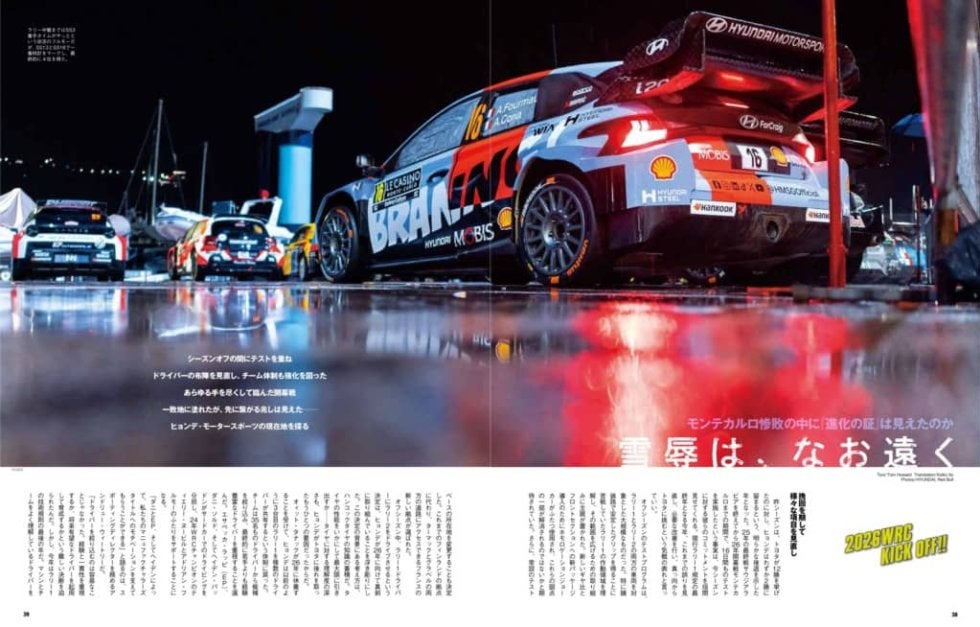 本誌では、WRC初優勝を狙う勝田貴元と、悲願の王座獲得を誓うエルフィン・エバンスに加え、WRC2へのフル参戦を開始した山本雄紀のインタビューを掲載。また、イプシロン・ラリー2での初陣を戦ったランチアや、新規定への参戦表明で注目を集める“PROJECTrallyONE”の最新情報など、2026年の注目トピックを網羅しています。