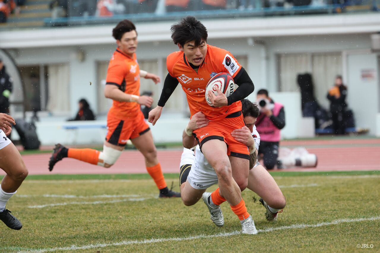また、戦前に「前半からセットプレー、スクラムでドミネートしていきたい」と語っていた為房慶次朗は、その言葉どおりのプレーを実践。前節は「キャリーが1、2回ほどしかなかった」ことから、「もっとコンタクトの回数を増やし、ボールキャリーにも積極的に関わろうと考えていました」と話す。今回は「ディップ(腰を落とした姿勢)からボールを受けてゲインすることもできたので、キャリーの部分は自分の中でも良かった」と、その手ごたえを口にした。