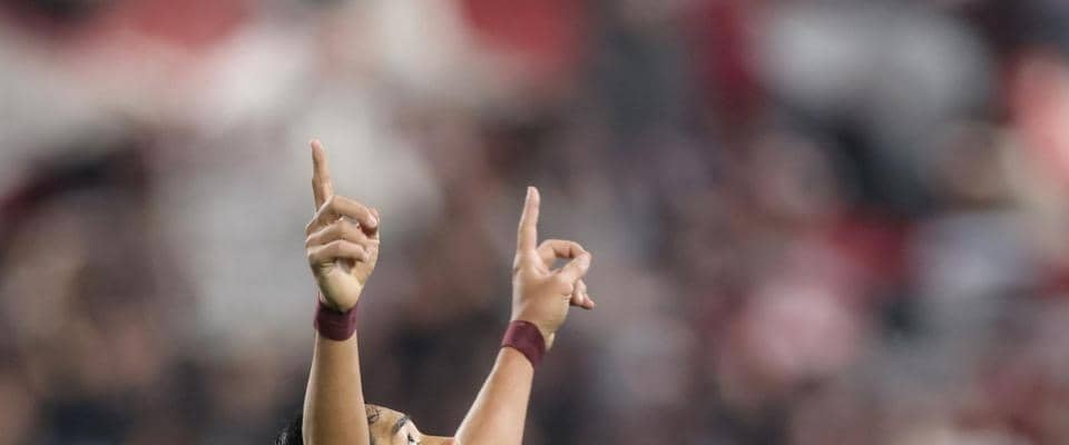 右人差し指を高々と天に突き上げて、喜びをあらわにした武藤。6日に行われた百年構想リーグ開幕戦・京都戦に続く、2試合連続ゴールを決めた。
