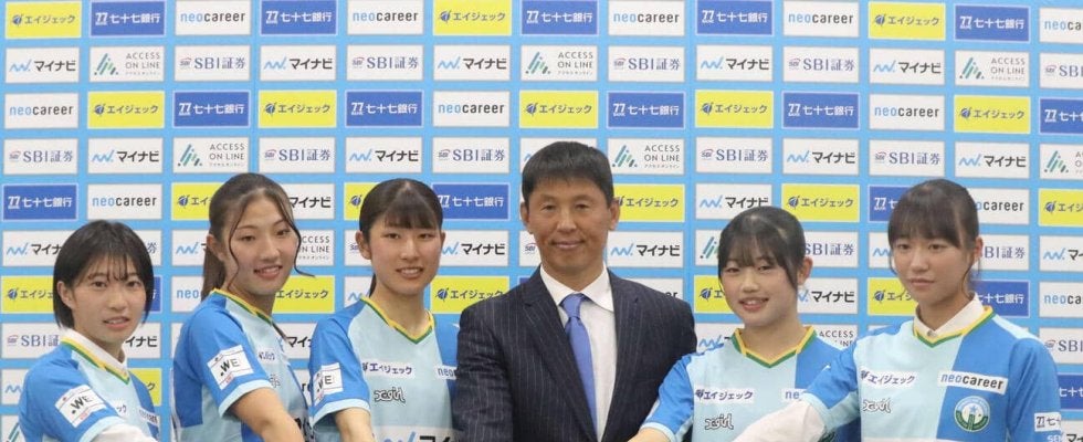 WEリーグのマイナビ仙台は10日、ユアテックスタジアム仙台で新加入選手会見を行い、須永純監督(50)と山路嘉人強化育成部部長(55)、新加入の5選手が登壇した。