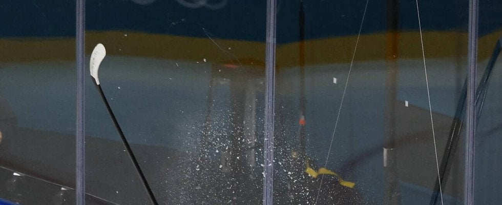 パンチを受けたユンガケルも怒りが収まらず、スティックを氷上に放り投げた。