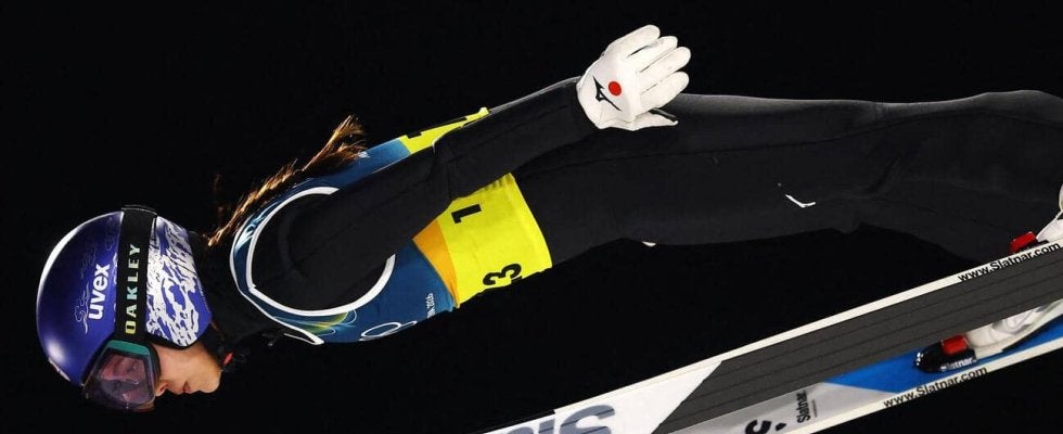 2022年北京五輪でスーツ規定違反による失格を受けた高梨沙羅(29=クラレ)が、日本の3番手として、96・5メートルを飛び、チームを5位から3位に押し上げた。首位スロベニアと12・3点差につけた。