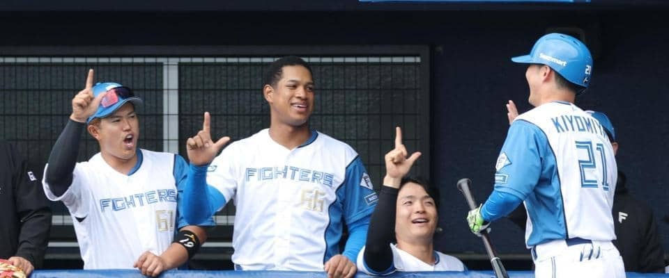 日本ハムは二回、清宮幸が第1打席で左中間へ先制ソロを放った。試合後は「ホームランを打ててよかったです」とはにかんだ。