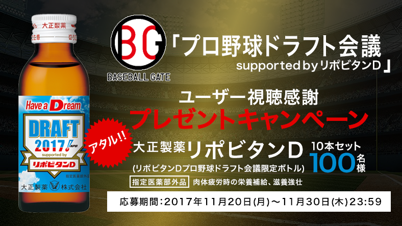 題して、「BASEBALL GATE『プロ野球ドラフト会議』ユーザー視聴感謝プレゼントキャンペーン」。