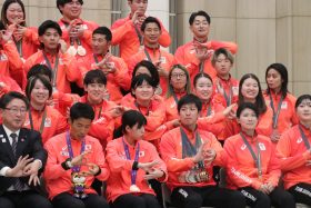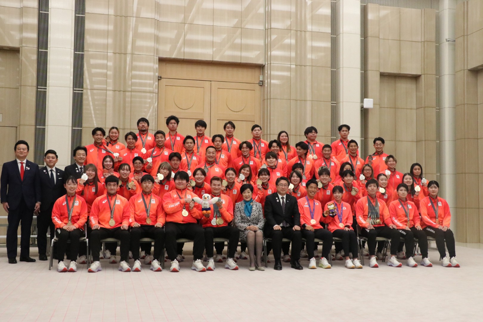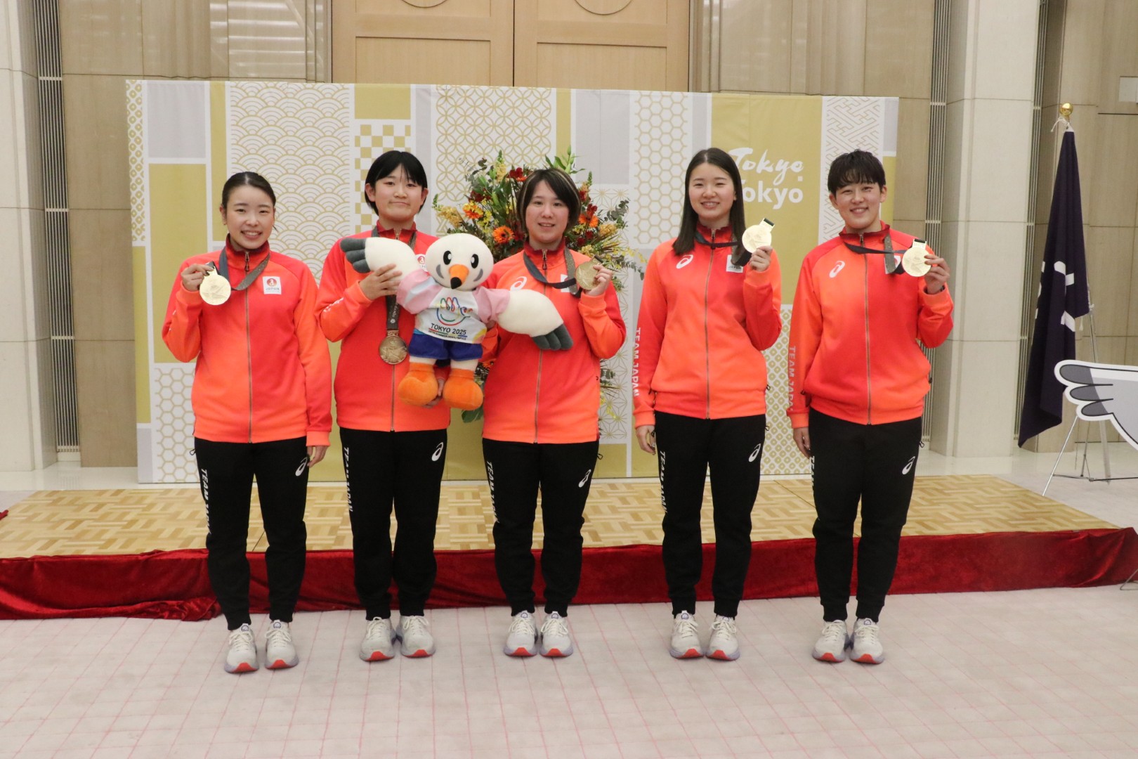 昨年11月に開催された東京2025デフリンピックで活躍した、東京都ゆかり(在住、在勤など)のメダリストに「都民スポーツ大賞」と、金メダルを獲得した選手には「東京都栄誉賞」が東京都より贈られることとなり、同大会で優勝したデフバレーボール女子日本代表の5選手が、2月10日に都庁で行われた表彰式に出席した。