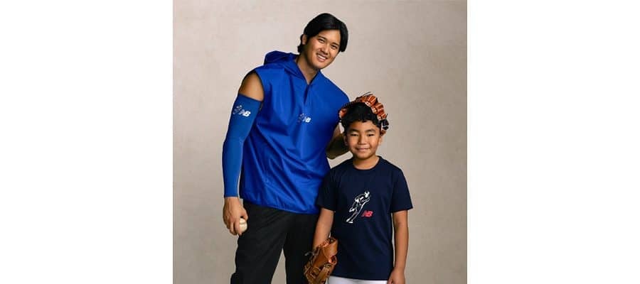 ニューバランス・ベースボールの公式インスタグラムには大谷が新たなデザインの服を着用し、子どもの頭にグラブを置いて笑顔で映る写真が公開されている。