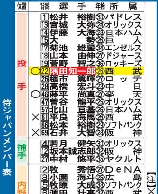 3月のWBCに出場する侍ジャパンの事前合宿が14日、宮崎市内でスタート。ウオーミングアップ、キャッチボールで体を温めた選手たちは午前11時ごろから守備練習に移った。内外野の布陣は以下の通り。