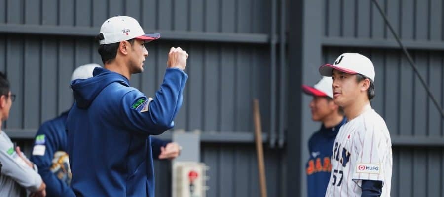 侍J合宿、初日から各所で“ダルビッシュ塾” 松本&北山に熱視線…ブルペンで指導も | 野球